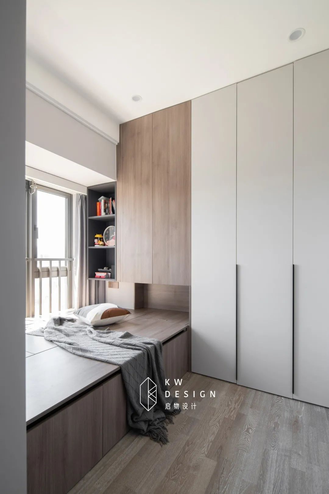搭配全屋通刷的浅灰色墙面,改用浅色木地板,使空间清新素雅。
