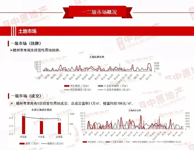 赣州市上周有5宗经营性用地成交,总成交面积11万㎡,楼面均价799元/㎡。