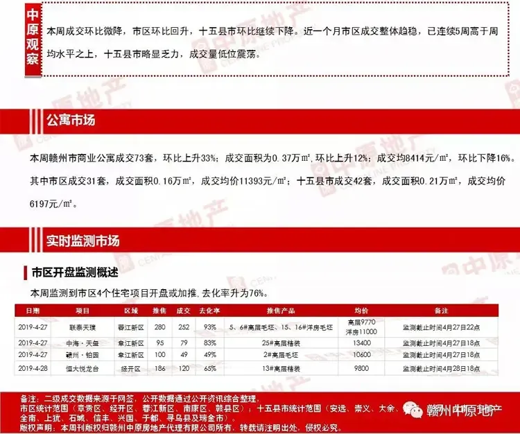 上周赣州市住宅成交993套 商业公寓成交73套(2019.4.22-4.28)