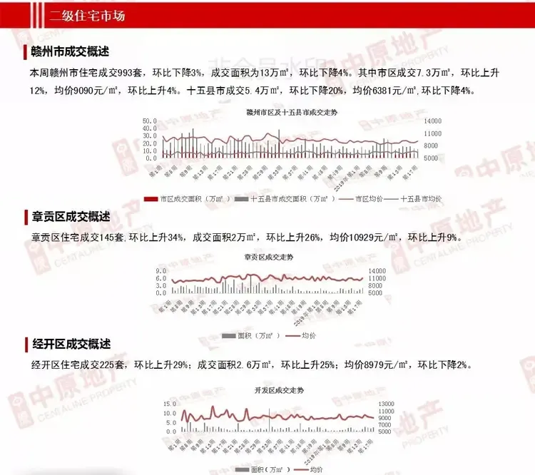 上周成交环比微降,市区环比回升,十五县市环比继续下降;